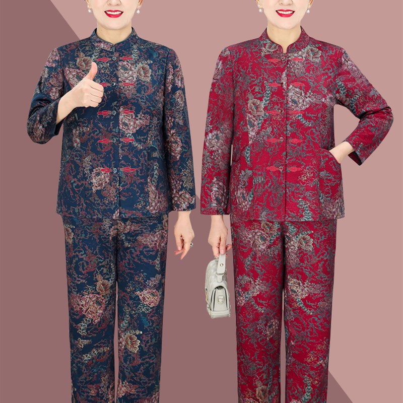 奶奶装春秋款套装中老年人女薄款长袖衣服气质妈妈装唐装开衫衣服