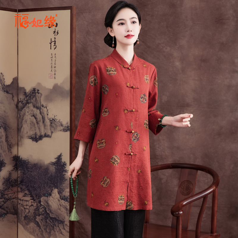 改良复古旗袍上衣春秋季女装年轻妈妈装唐装女长袖外套茶服工作服