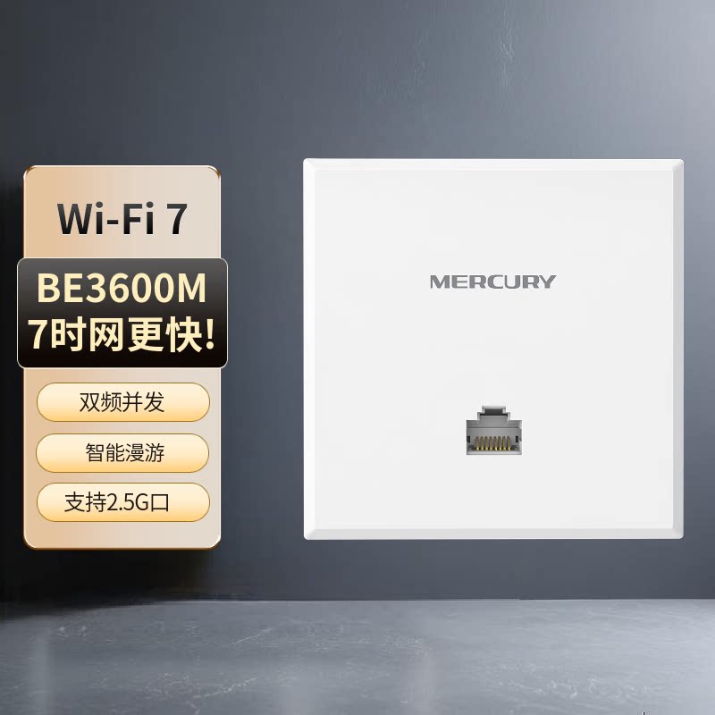 水星无线ap面板千兆5G双频全屋wifi7网络覆盖BE3600家用别墅酒店86型入墙壁插座式组网poeac一体机路由器