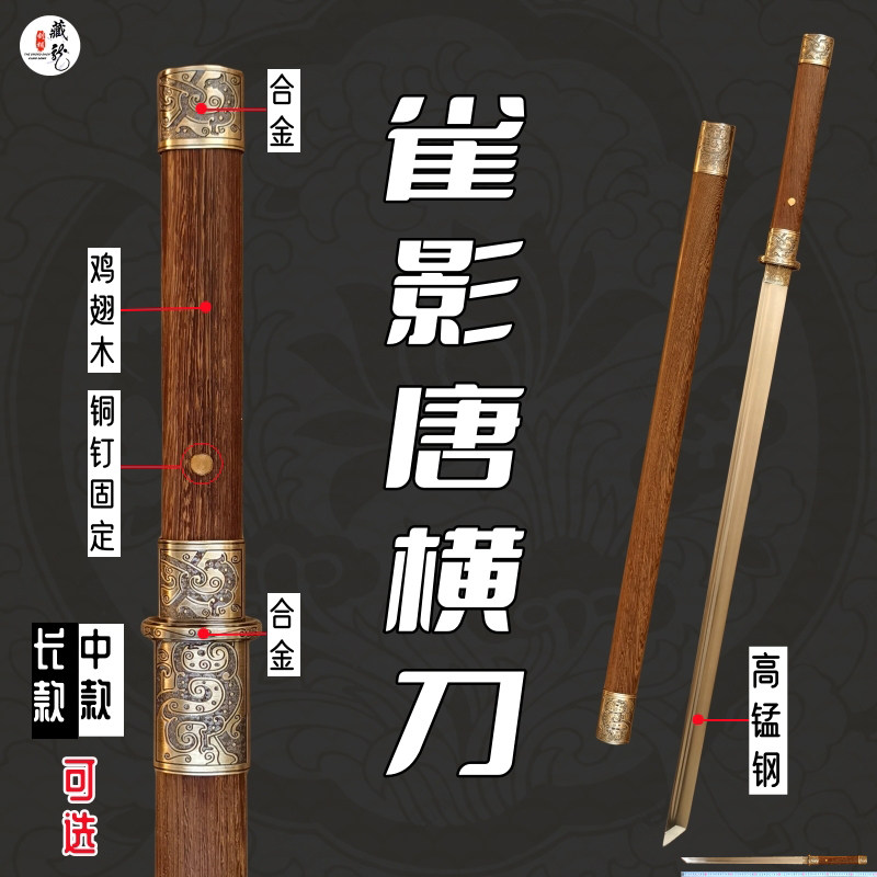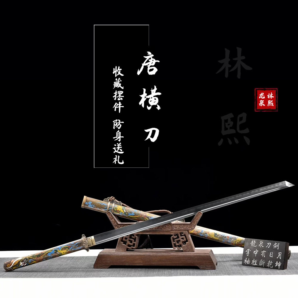 龙泉藏龙雀影唐横刀一体高锰钢镇宅冷兵器绣春刀长刀短刀剑未开刃