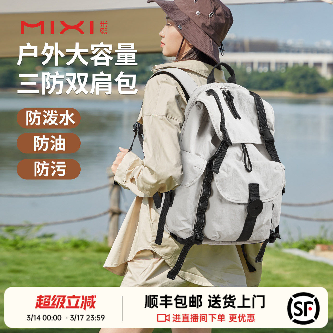 米熙大容量双肩包女新款户外登山防水轻便旅行背包学生电脑书包男