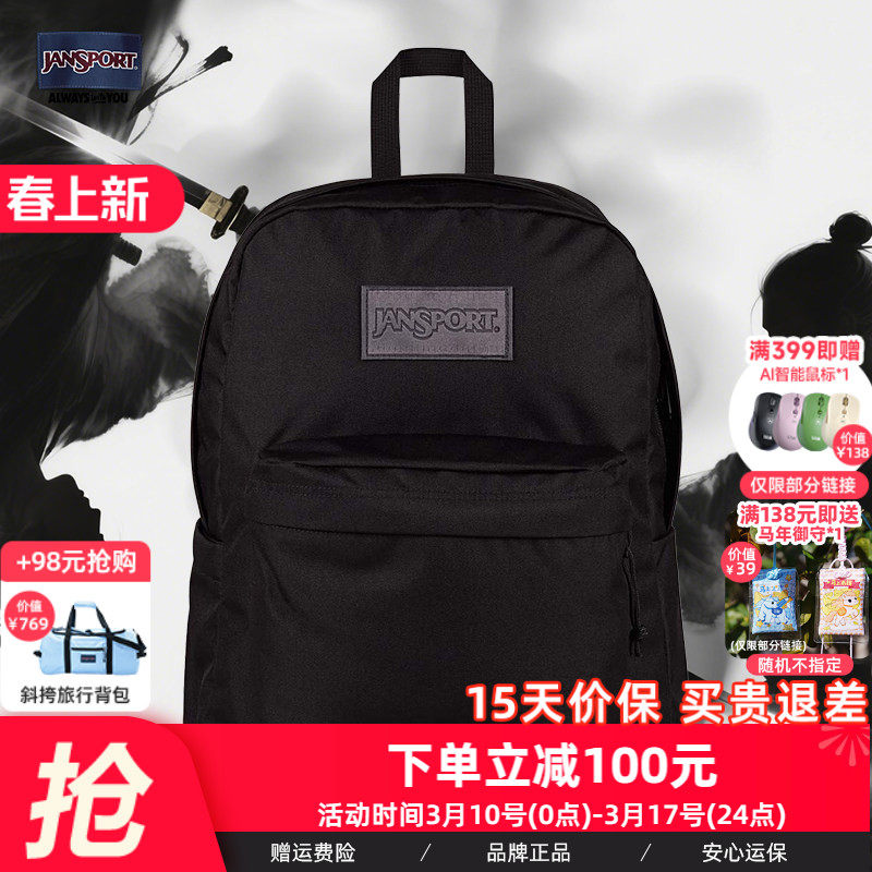 JanSport背包女生2025新款双肩电脑背包男士黑武士大容量旅行背包