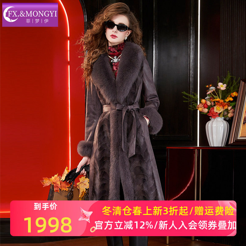 - 皮毛一体外套女中长款 进口