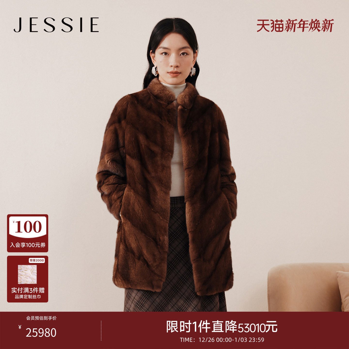 JESSIE贵气貂皮皮草女士立领水貂毛中长款保暖外套2025年冬季新款