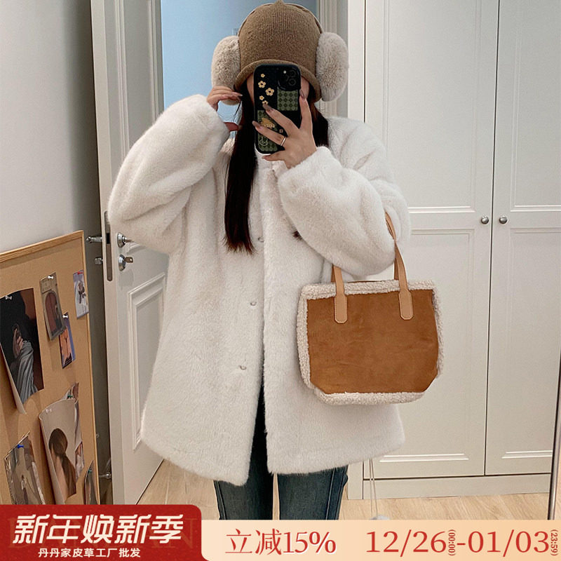 2025冬新款环保皮草外套高级感水貂皮毛一体外套女中长款毛毛上衣