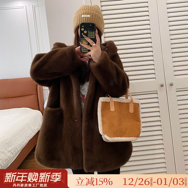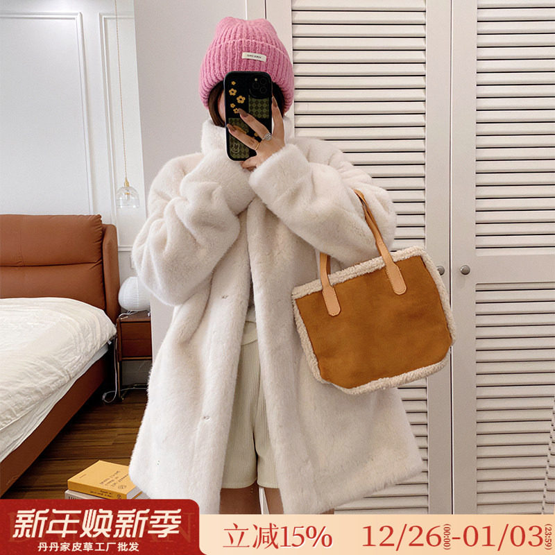仿天鹅绒貂皮大衣皮毛一体翻领中长款水貂绒环保皮草女冬毛毛外套