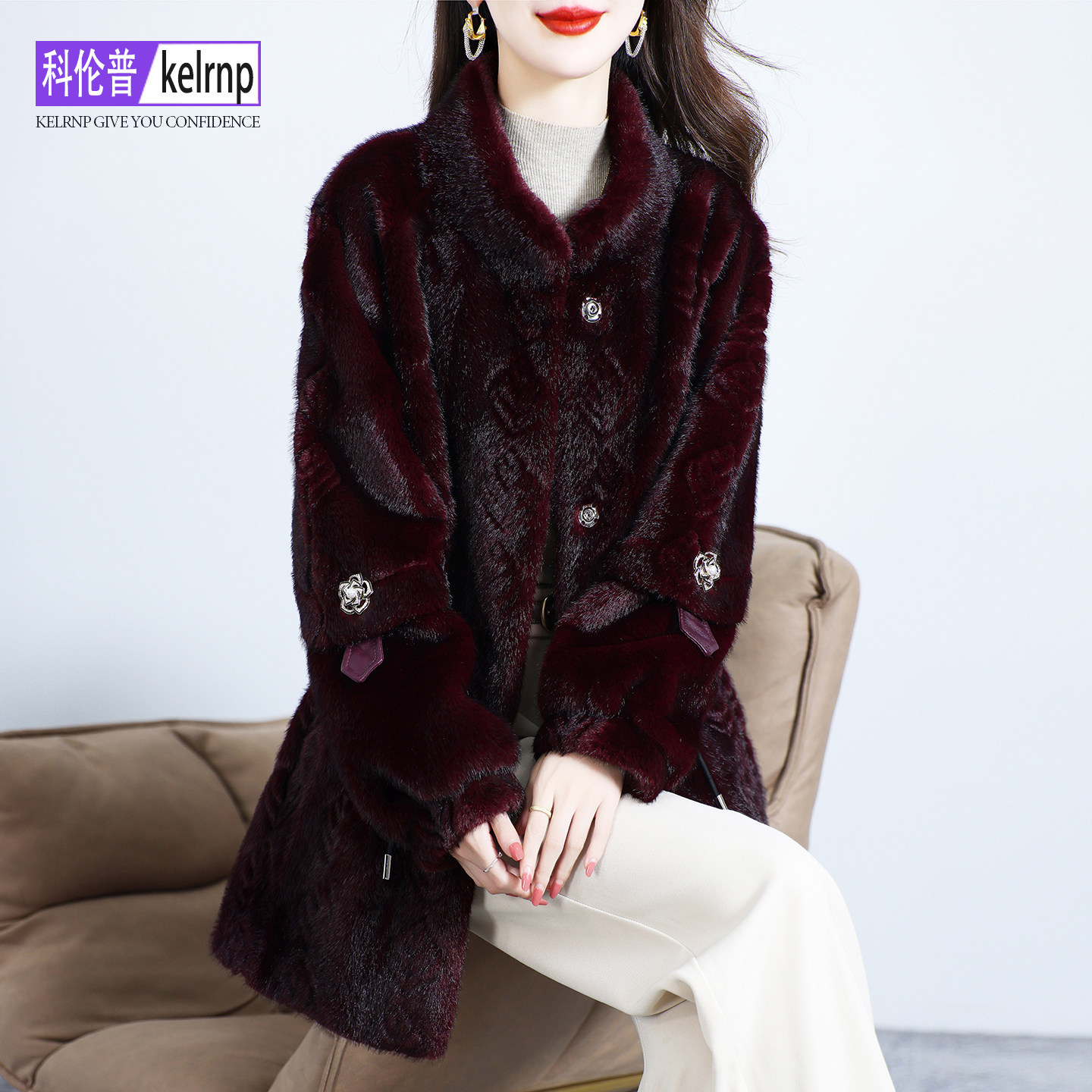 海宁貂皮大衣女中长款水貂毛加厚皮草外套冬季新款中老年大码妈妈