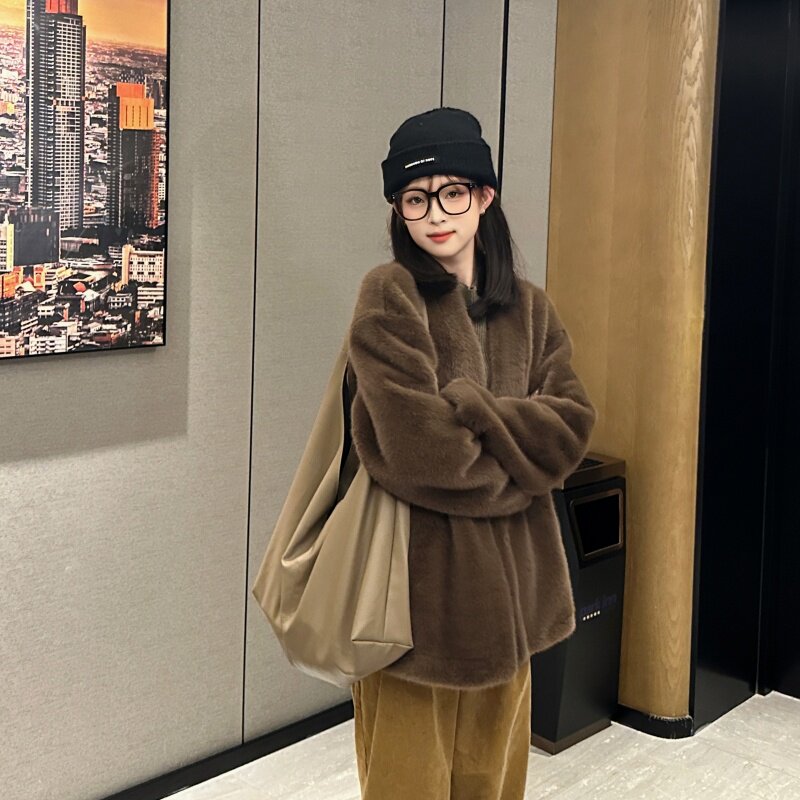 2025秋冬新款大衣年轻款极简奢华仿貂皮立领龙猫皮草中长款外套女