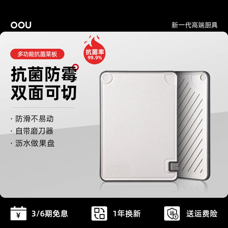 OOU菜板抗菌防霉塑料砧板家用辅食案板切水果占板沥水多功能厨房