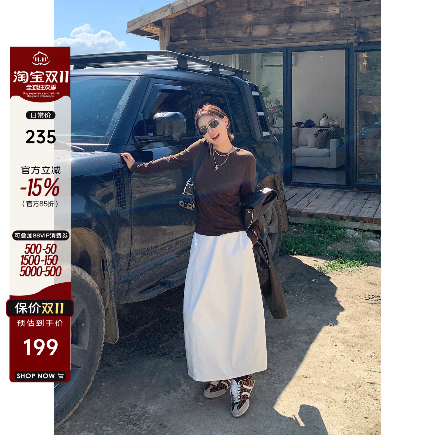 YANGLE_白色半身裙女2025秋季新款韩系极简小个子宽松休闲a字伞裙