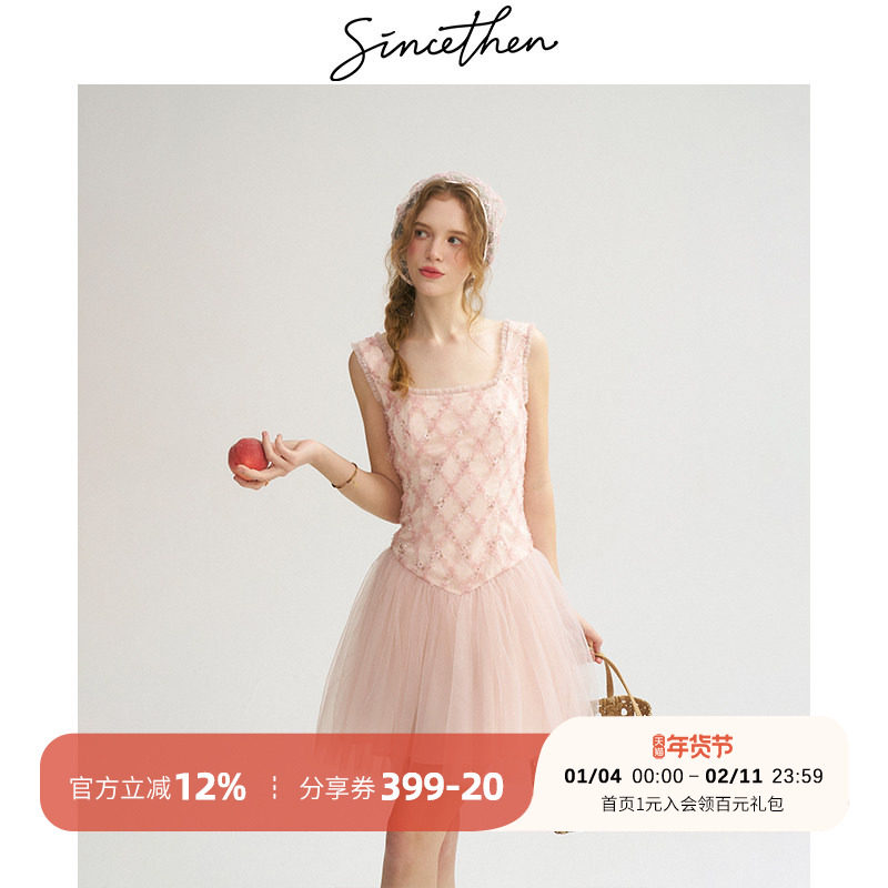 sincethen 法式蓬蓬裙粉色连衣裙纱裙高级感裙子小礼服生日穿搭女