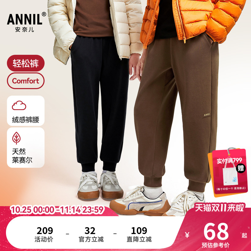 安踏儿童装女童加绒裤子春秋款2025秋季新款秋冬款长裤卫裤运动裤