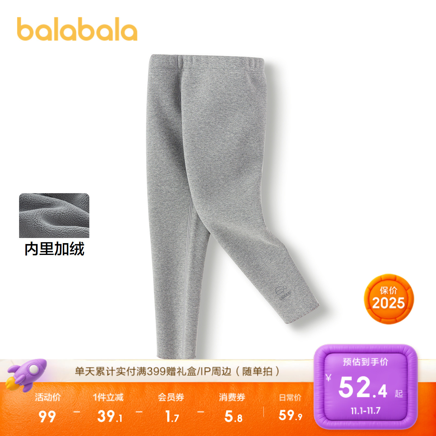 【商场同款】巴拉巴拉宝宝长裤加绒加厚束脚裤冬女童裤子2025新款