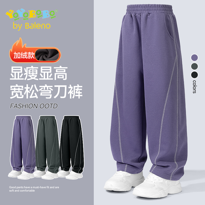 班尼路女童裤子加绒2025新款阔腿裤大童运动宽松休闲裤儿童弯刀裤