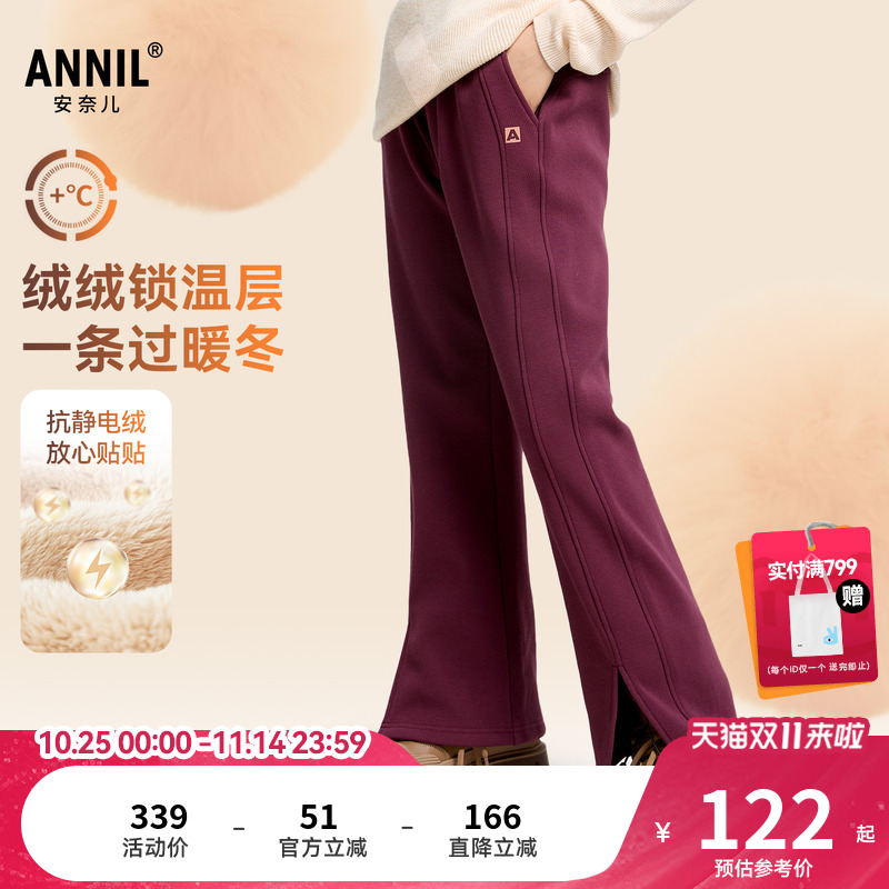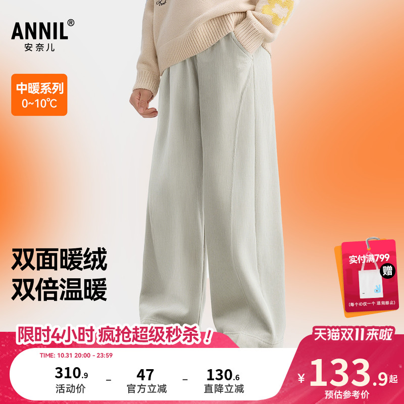 安奈儿童装女童裤子2025冬新款加绒保暖简约时尚厚款微喇长裤