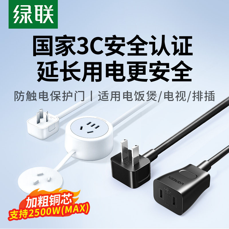 绿联电源延长线插排二两三五孔双孔插头座充电板转换器电视机饭煲