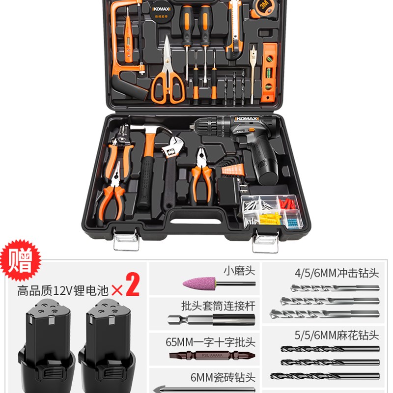 科麦斯家用工具箱多功能 维修工具套装组合电钻五金万用电动德国