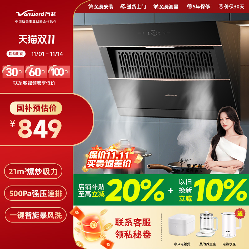 [政府补贴]万家乐欧式油烟机家用厨房大吸力顶吸式抽油烟机旗舰店