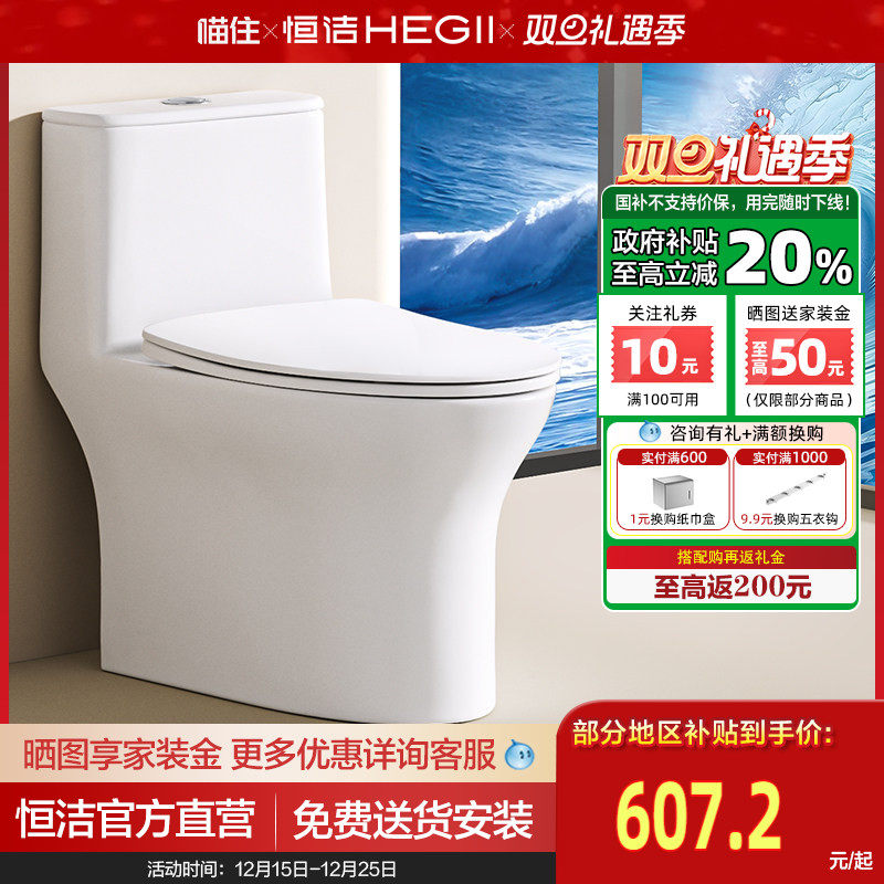 HEGII恒洁小户型虹吸式家用马桶节水静音防臭抑菌坐便器513