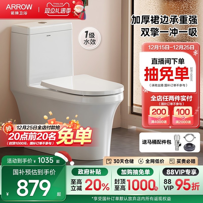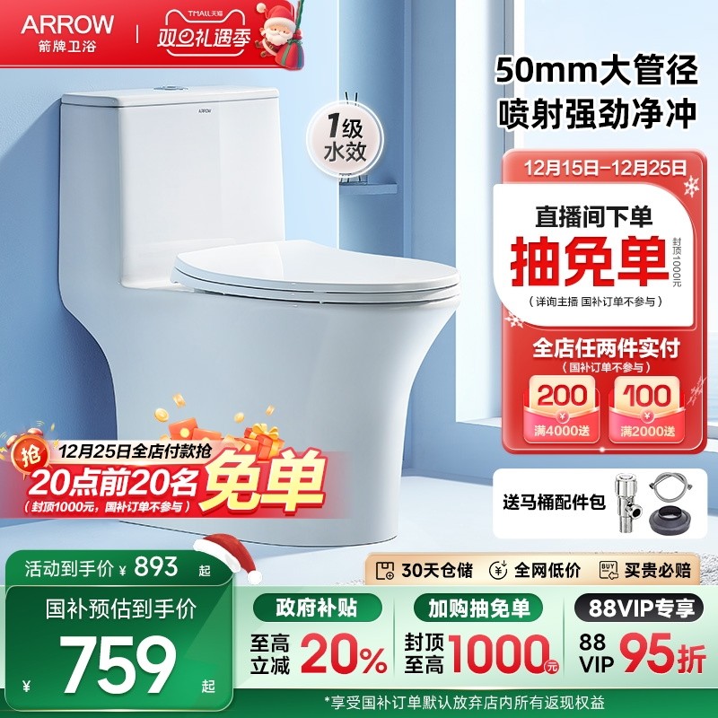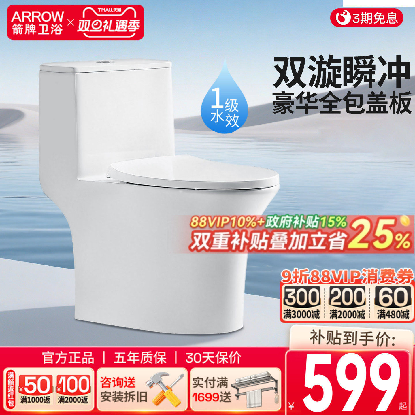 箭牌静音节水马桶高端防溅水60mm大口径大冲力虹吸家用抽水坐便器