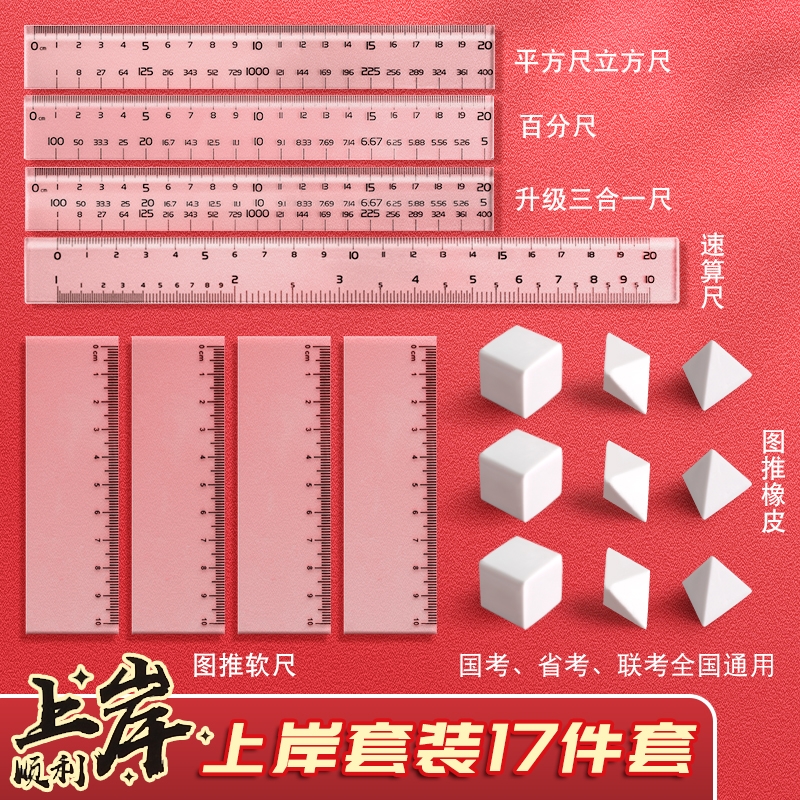 公考神器考公橡皮套餐公务员考试专用工具文具图推国考橡皮套装行测图形推理正方形速算尺百化分尺子折叠数字