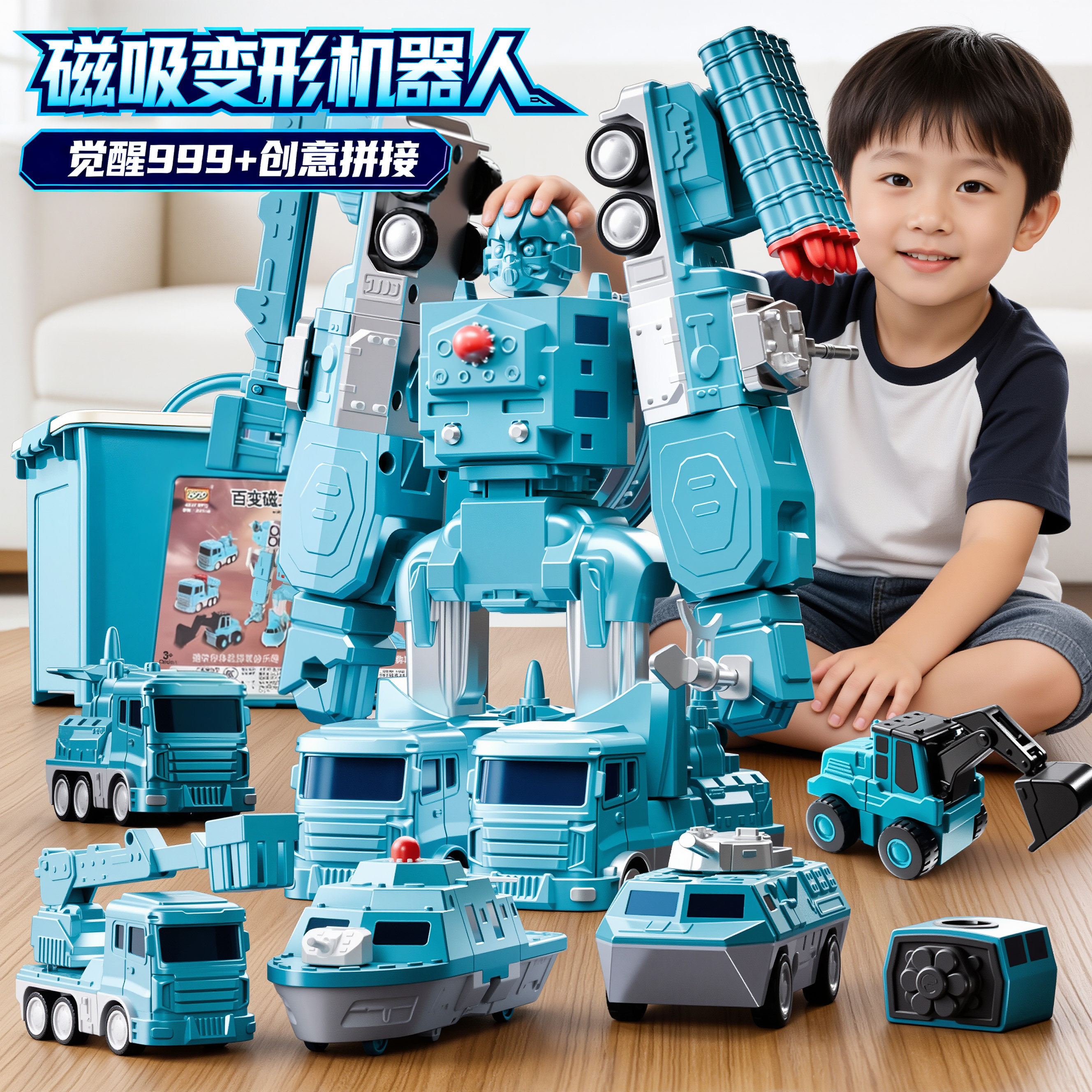 百变磁吸机器人合体变形金刚机甲车模型3到6岁男孩磁力拼装玩具车
