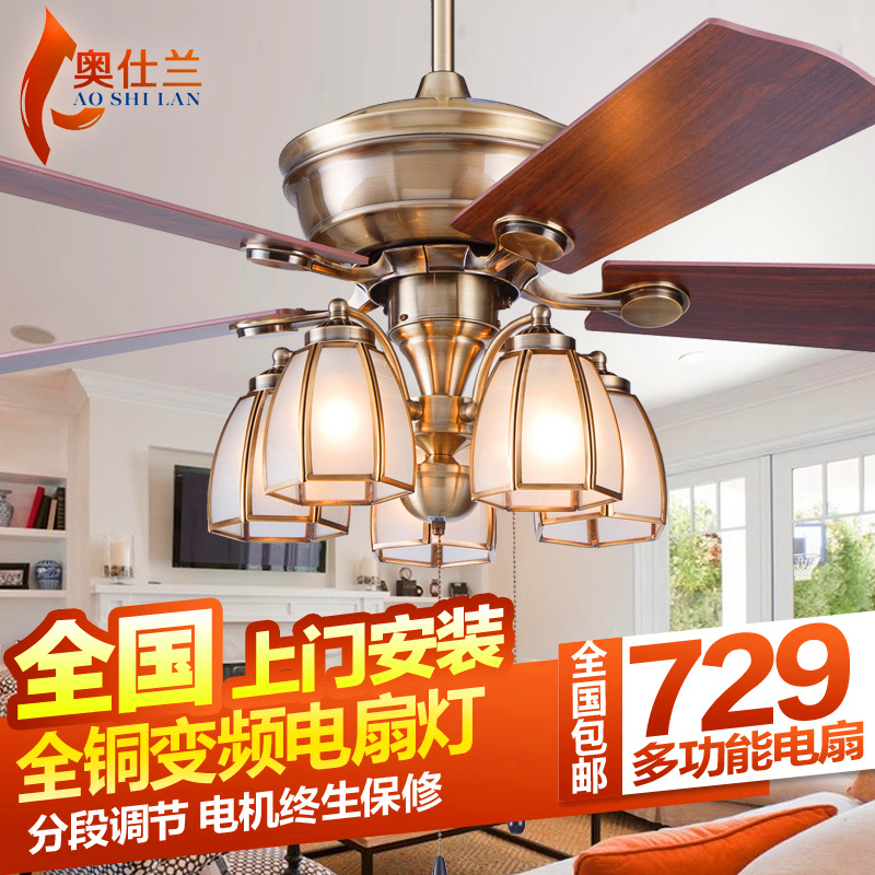 全铜吊扇灯 客厅风扇灯 餐厅美式电风扇灯家用欧式带灯吊扇风扇