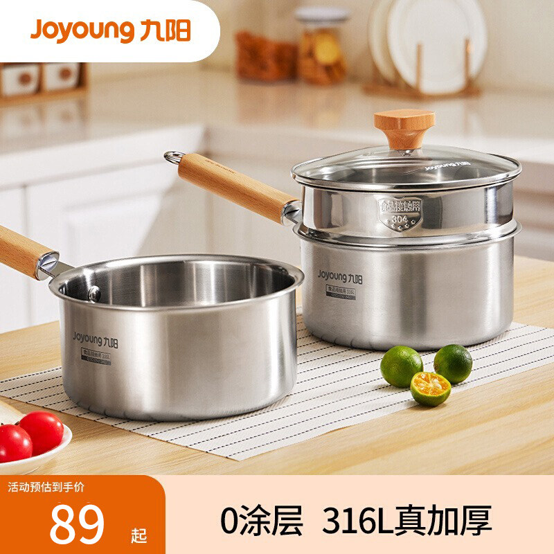 九阳小奶锅316不锈钢奶锅无涂层婴儿宝宝辅食锅煎煮一体泡面小锅