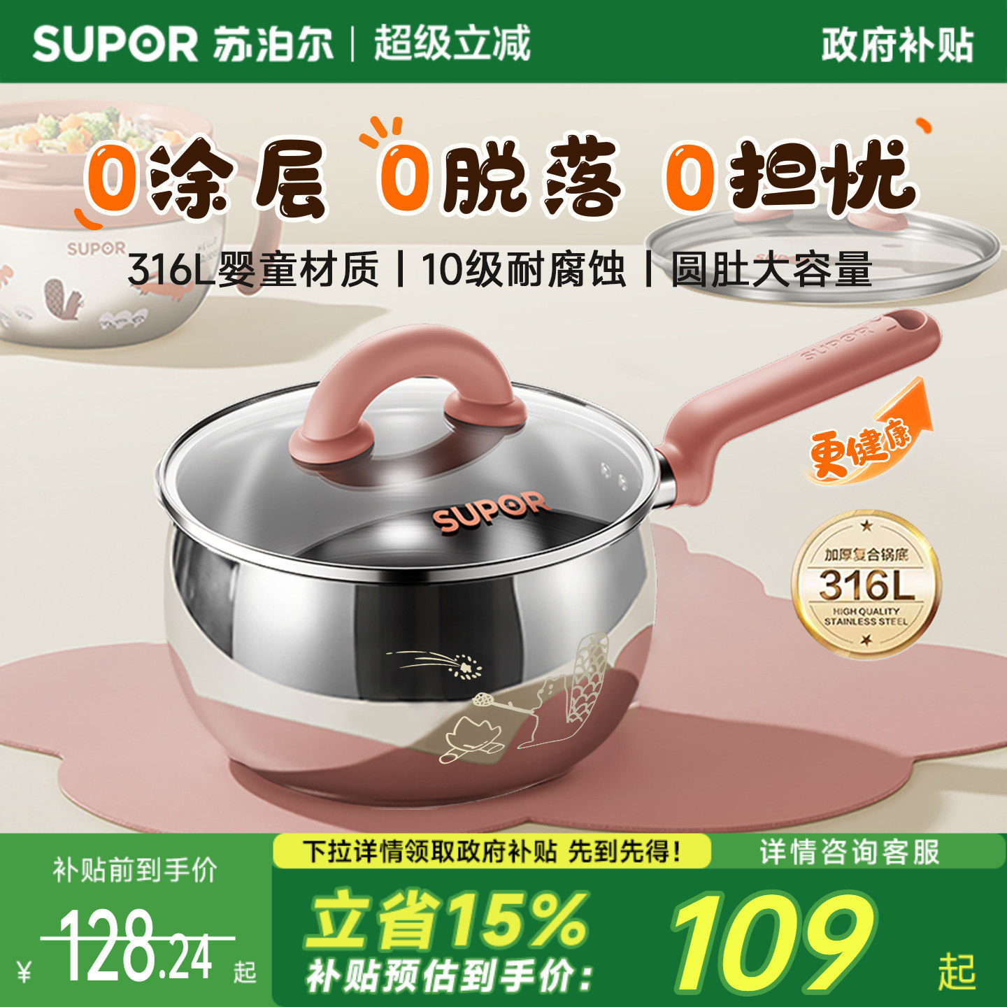 苏泊尔316L不锈钢奶锅无涂层宝宝辅食锅家用陶瓷热奶锅一人食煮面