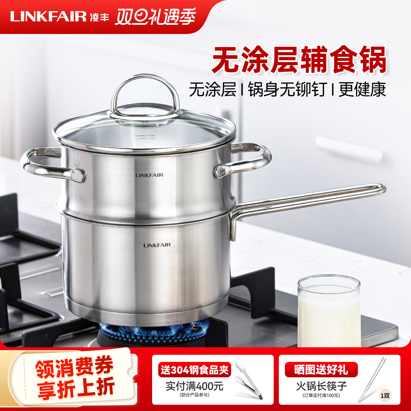 凌丰宝宝多功能辅食锅304不锈钢奶锅婴儿煮热牛奶锅蒸煮一体家用