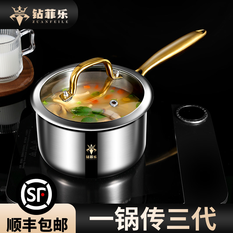 【一锅传三代】钻菲乐316不锈钢奶锅宝宝婴儿辅食小锅煮泡面汤锅