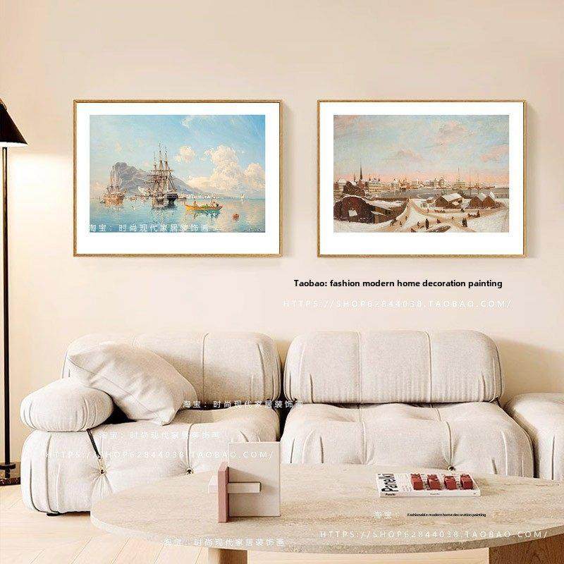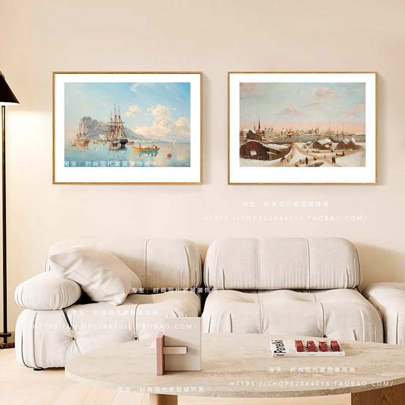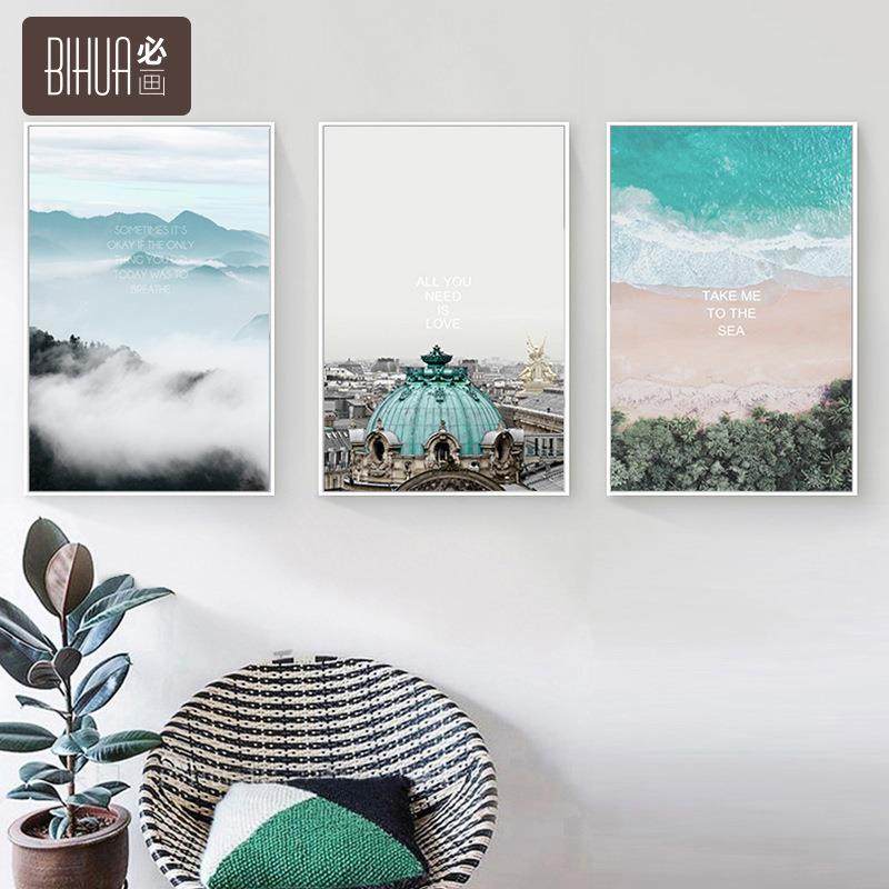 北欧风格装饰画客厅沙发背景墙壁画现代简约创意组合建筑风景挂画