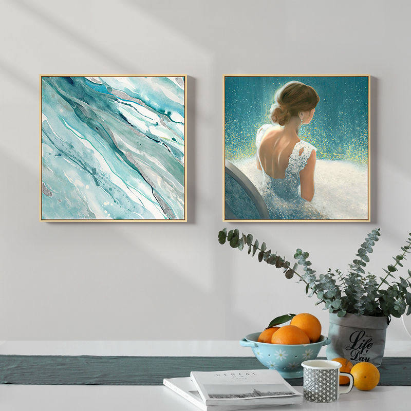 北欧风格装饰画玄关ins清新田园客厅壁画正方形饭厅餐桌书房挂画