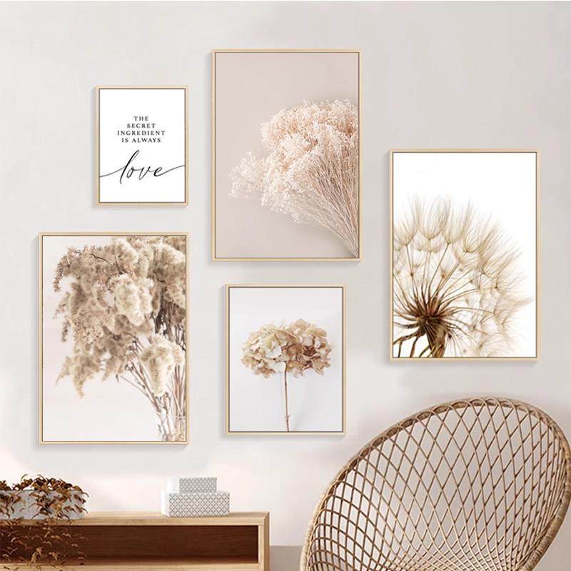 北欧风格装饰画客厅背景墙画卧室壁画芦苇蒲公英植物米色组合挂画
