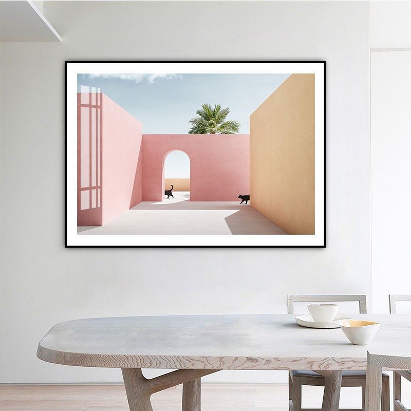 北欧风格装饰画 现代简约客厅沙发挂画卧室壁画风景墙画粉色ins风