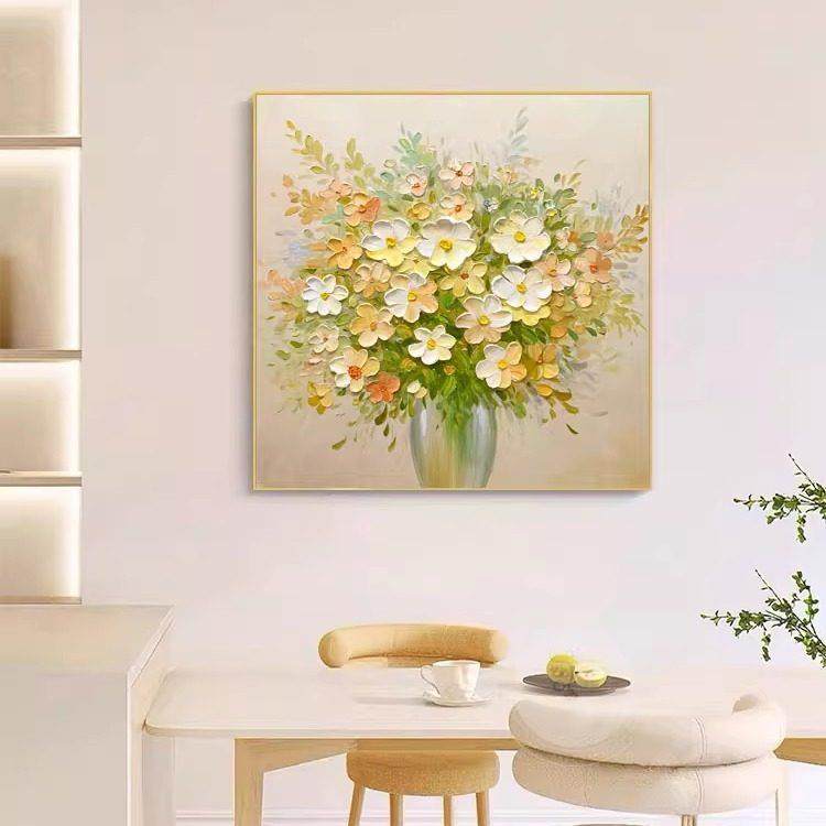 抽象油画餐厅挂画北欧风格装饰画轻奢现代客厅正方形花卉卧室壁画