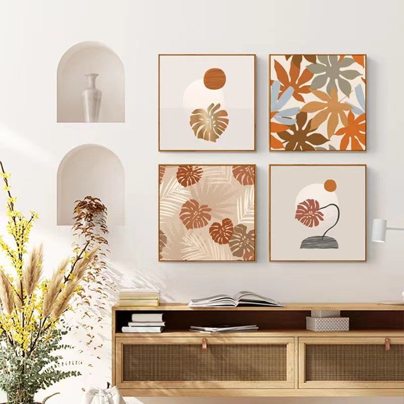 北欧风格装饰画抽象床头植物花卉轻奢卧室挂画小清新简约客厅壁画