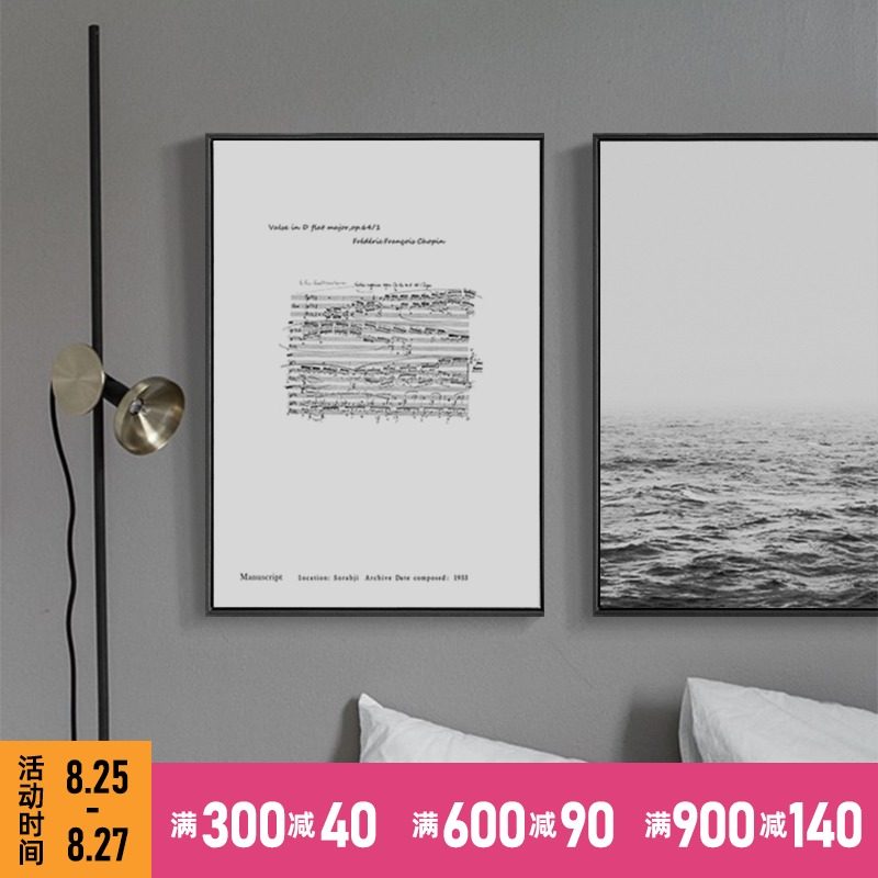 北欧风格装饰画客厅沙发背景墙挂画卧室餐厅壁画黑白创意海的乐章