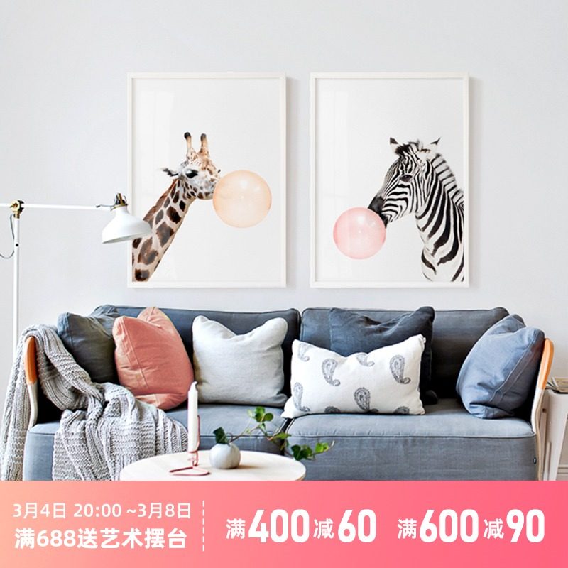 美森映象 趣味动物北欧风格装饰画儿童房挂画卧室床头画清新创意