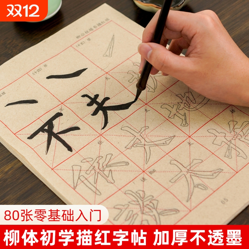 初学者入门柳公权柳体楷书笔画毛笔字帖描红毛笔书法练习纸小学生练毛笔字练字纸米字格毛边纸
