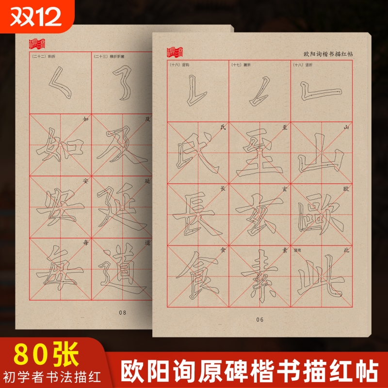 颜真卿颜体欧体中楷书隶书行书毛笔字帖描红米字格宣纸书法练习纸