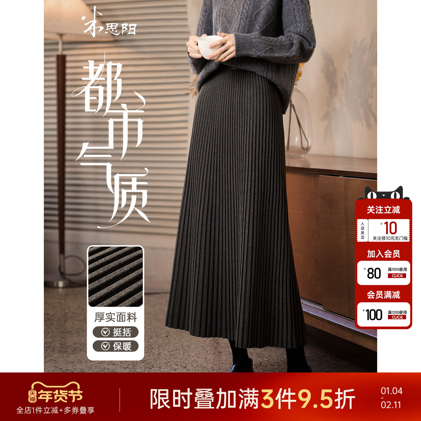 米思阳冬季新款通勤简约高腰半身裙垂坠遮胯灰色百褶裙显瘦A字裙
