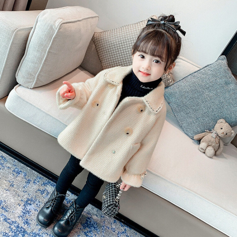 女童韩版小香风加厚呢子外套女宝宝冬季洋气上衣2025新款冬装时髦