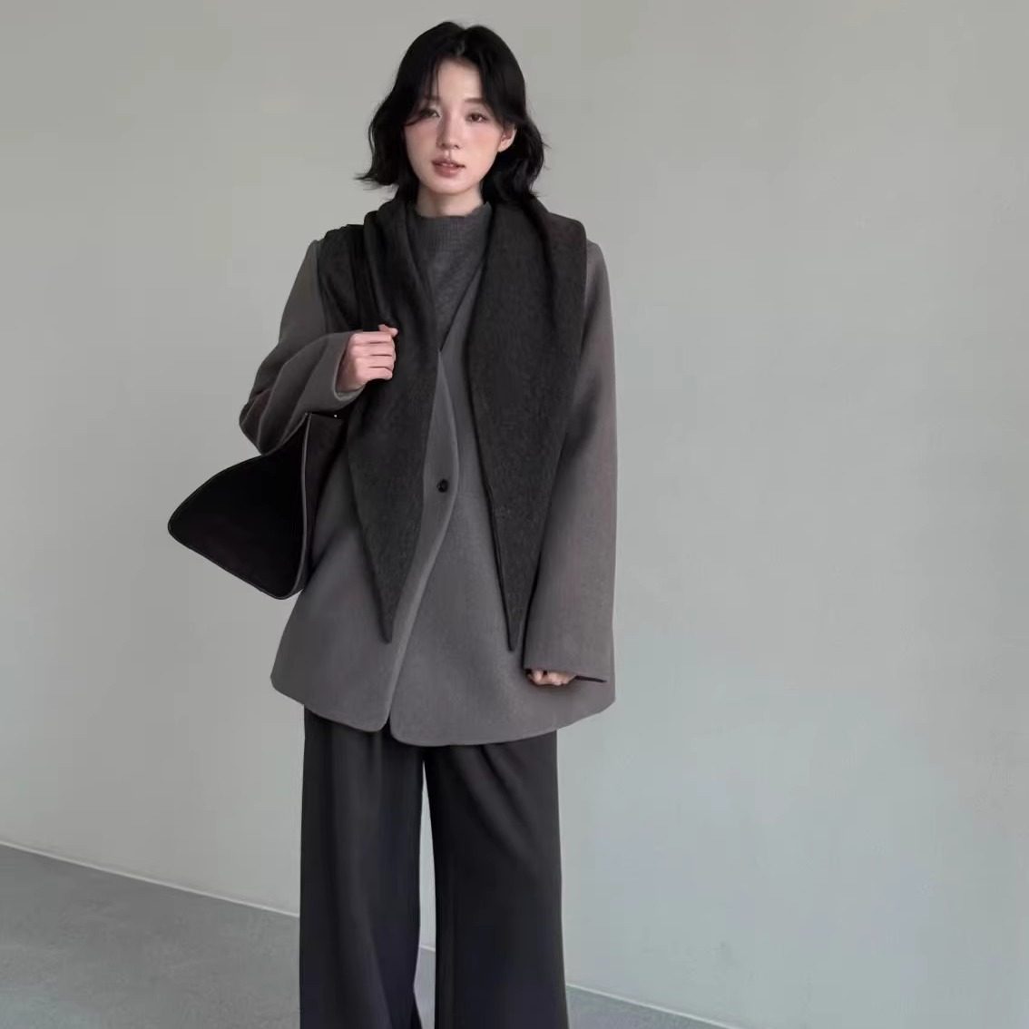 斑鸠灰宽松秋冬中长款羊毛呢大衣小众高级感赫本风加厚呢子外套女