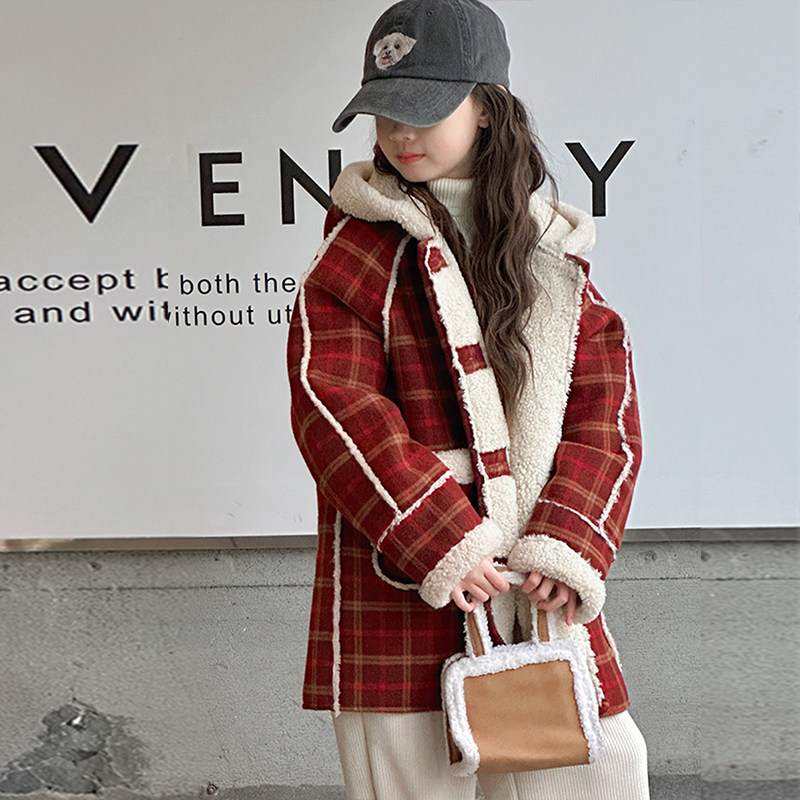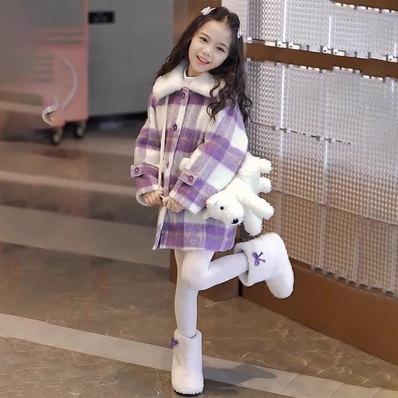 女童毛呢大衣2025秋冬季新款加绒加厚呢子外套女大童格子上衣洋气