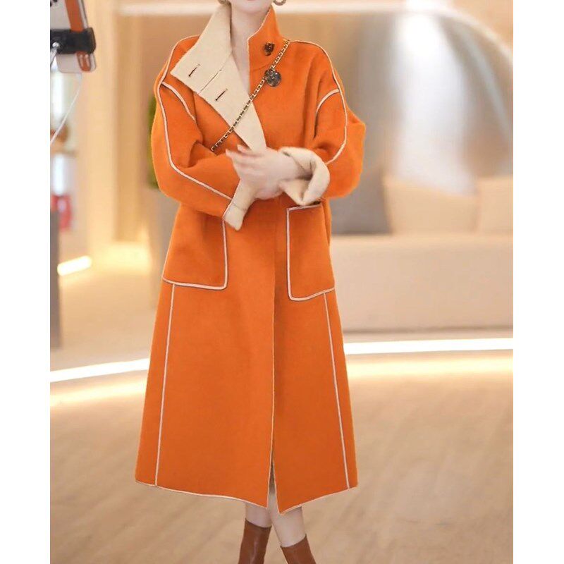 羊毛大衣女2022年秋冬新款高端桔色中长款气质毛呢加厚呢子外套女