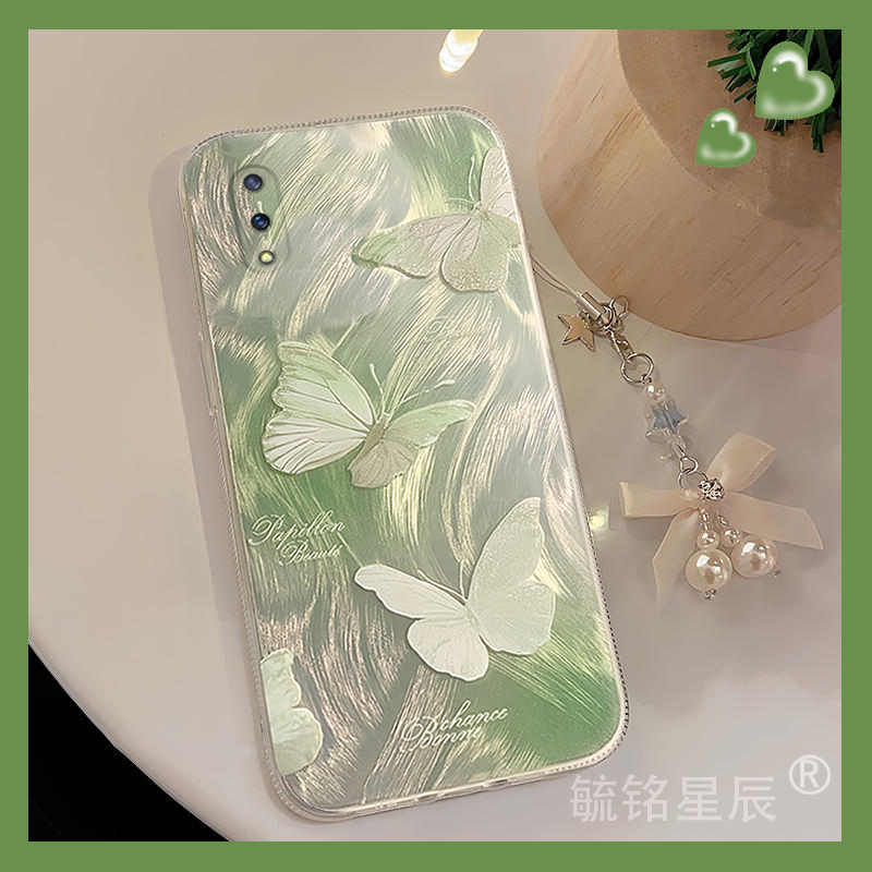 新款2024夏天绿色蝴蝶适用vivoX21手机壳X21A透明X21i硅胶的x21ia链条X20Plus挂件X6小众x20a高级感X9/s/i/X7