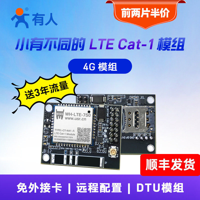有人4g模块dtu透传Cat1全网通插针式LTE小体积4gdtu远程配置7S0