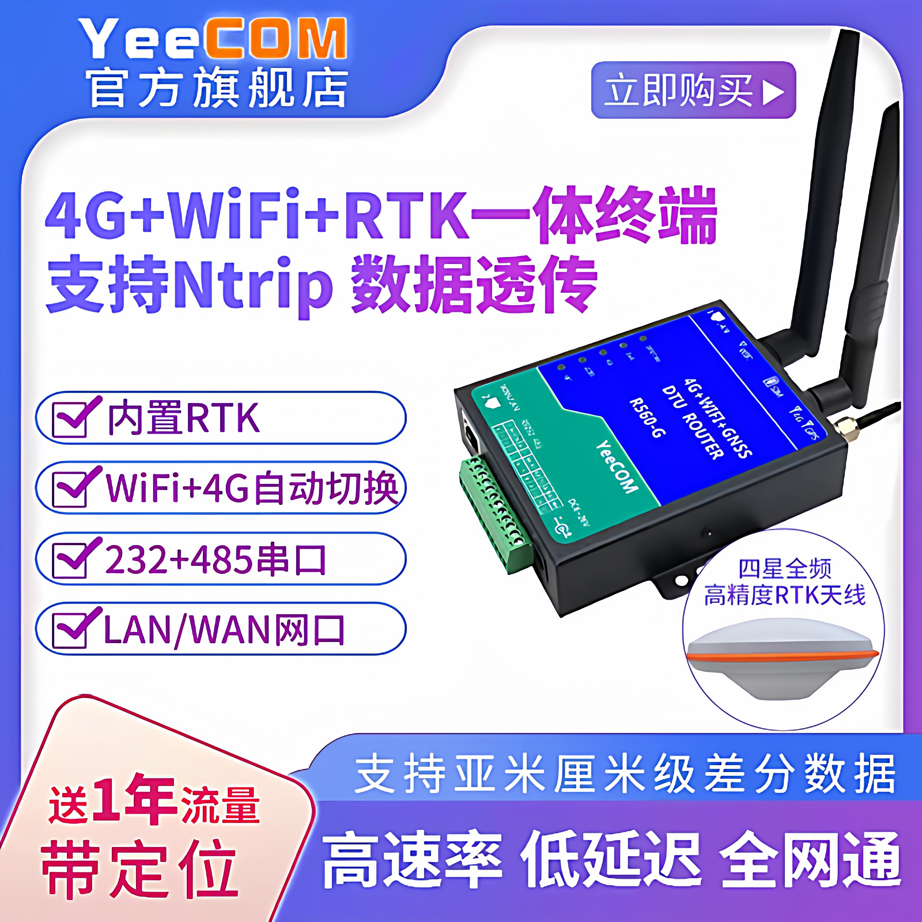 yeecom工业4g路由器cpe无线dtu模块wifi网口232串口485透传mqtts