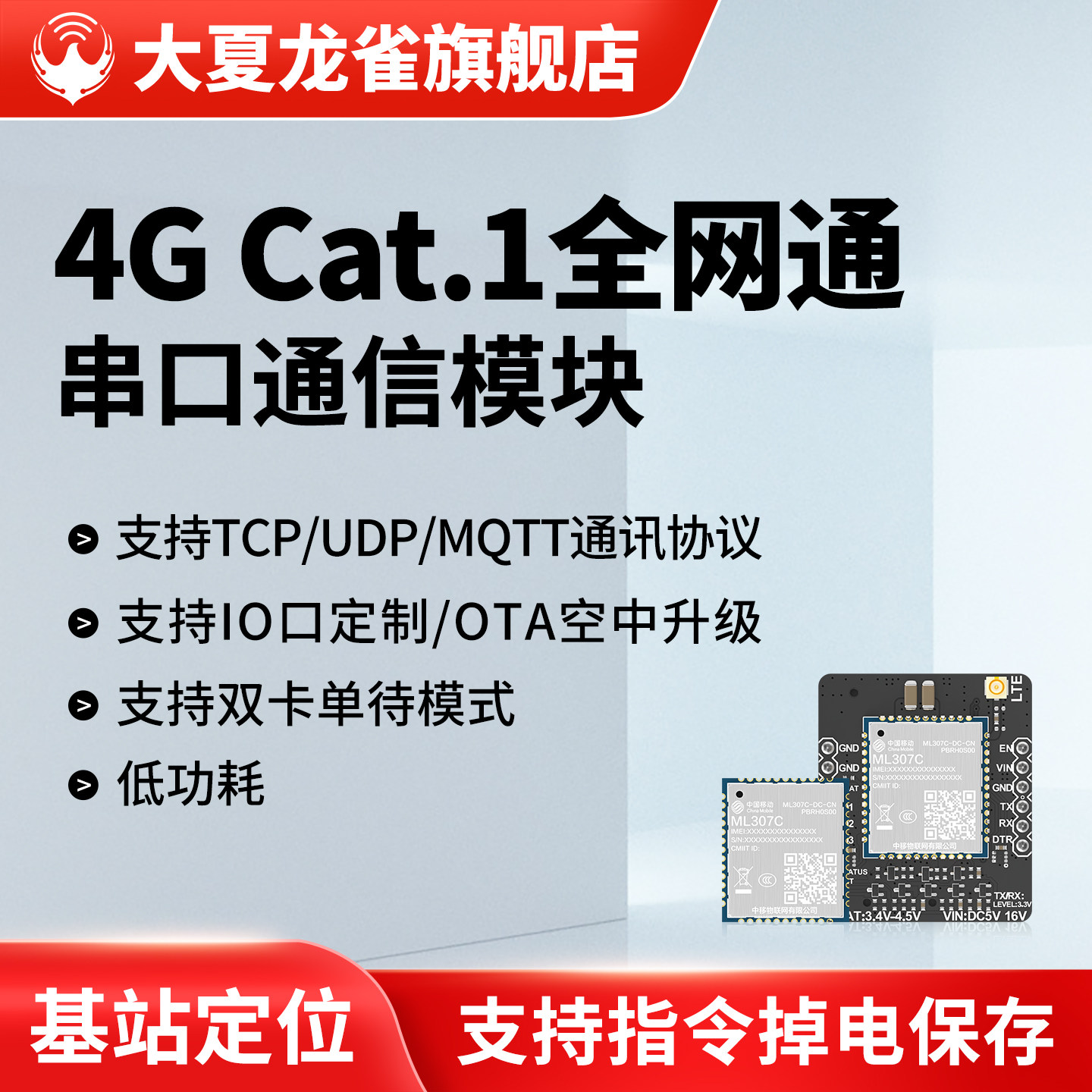 大夏龙雀4G模块Cat1物联网通信DTU中移ML307C北斗GPS定位mqttCT12